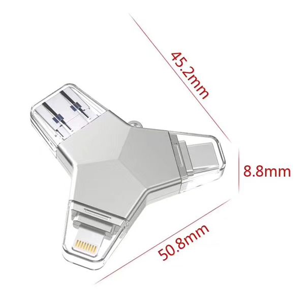 Welcome to GiftOne’s series of USB flash drives. This versatile 4-in-1 mobile USB device integrates four different interfaces, compatible with a wide range of devices. It offers convenient data transfer and storage solutions, making it an ideal promotional gift or practical giveaway for businesses.