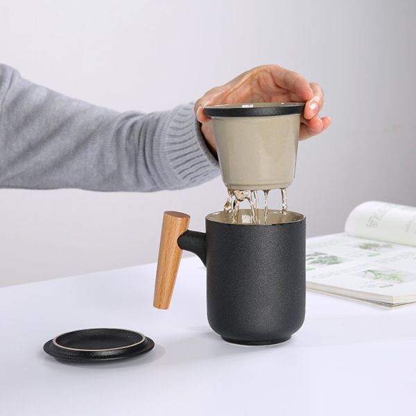Wooden Handle Ceramic Tea Mug