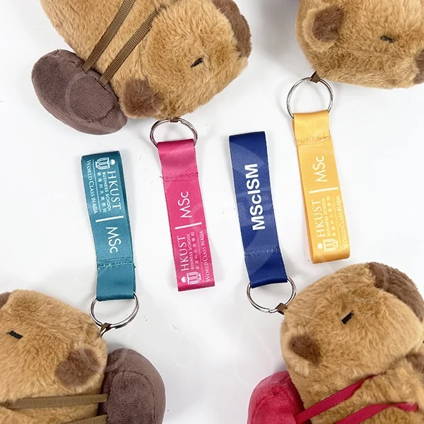 – Colors: The Capybara plush is in warm brown to evoke a sense of friendliness and comfort, complemented by different colored straps. Each strap features HKUST’s logo, patterns, and course names, adding personalization and practicality