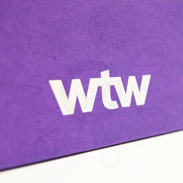 – Printing Process: Offset printing on the purple bag to showcase the white WTW logo and design, ensuring clarity and durability.