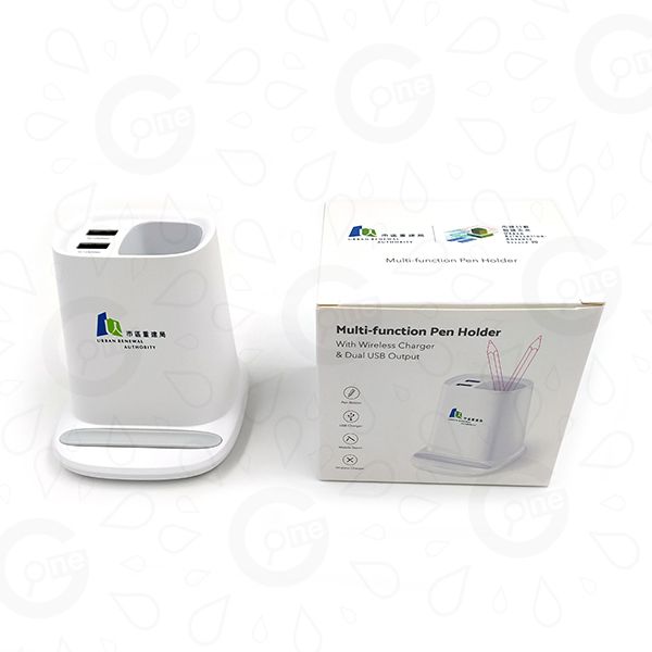 One The gift is a customized multifunctional QI wireless charging stand with pen holder for the Urban Renewal Authority. It adopts a three-in-one design and integrates QI wireless charging stand, dual USB charging interfaces and stationery netting pen holder. It is an ideal choice for a tidy desk. One Gift is committed to providing diversified promotional gifts, paying attention to the latest hot-selling gifts, welcome to inquire!
