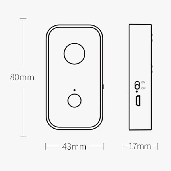 – Dimensions: 80 x 43 x 17 mm. Compact and lightweight, easily fits in a pocket or bag.
