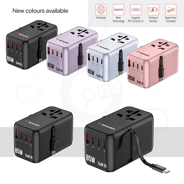 Welcome to GiftOne’s Verbatim collection! Our Charge ‘n’ Travel 85W Universal Travel Adapter with Retractable Cable is a high-performance charging solution designed for travel and everyday use. It supports fast charging for multiple devices, making your journey more convenient and worry-free. This makes it an ideal promotional gift or corporate giveaway.
