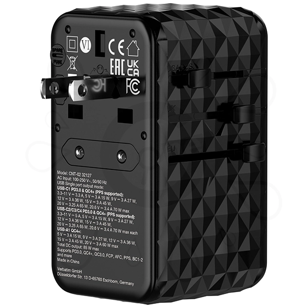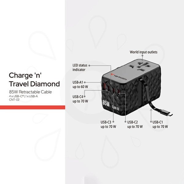 The Verbatim 85W Travel Adapter with Retractable Charging Cable (CNT-02) is a premium choice in GiftOne’s branded gift series, specifically designed for frequent travelers. It combines convenient charging features with safety protection, making it suitable for various promotional activities and corporate gifts. This product is not only practical but also enhances brand image, allowing your customers to feel cared for and valued.