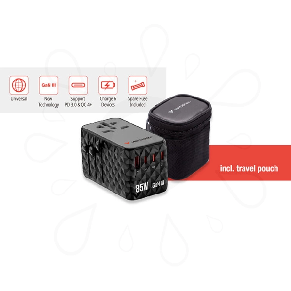 Verbatim 85W Travel Adapter with Retractable Charging Cable