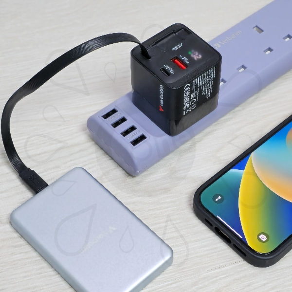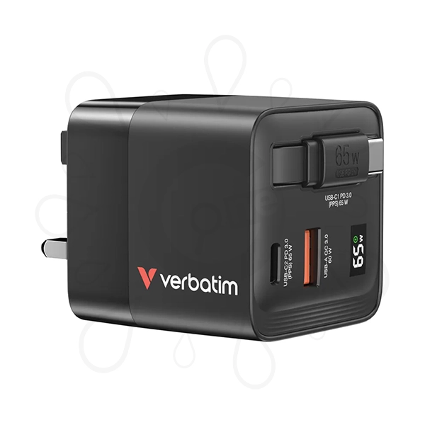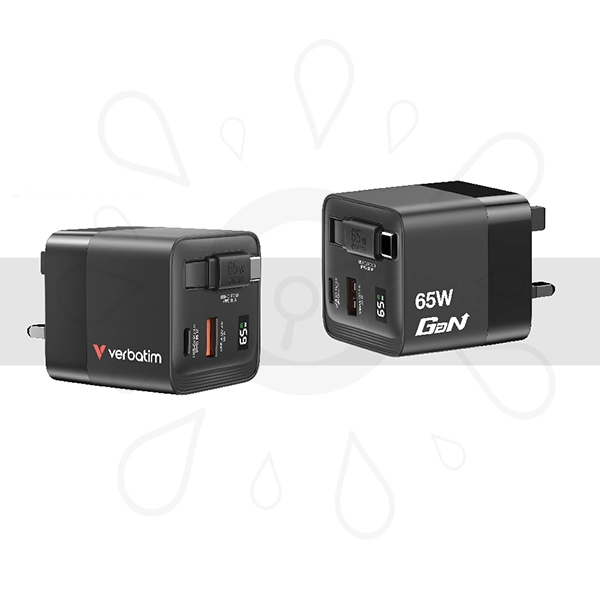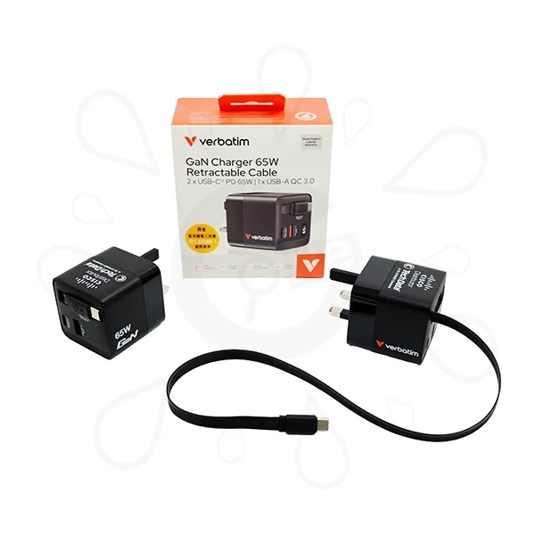 Custom Verbatim GaN Charger 65W with Retractable Cable